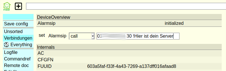 Beachtet das "!" vor der Textnachricht! Nach dem Klick auf "set" sollte das angewählte Telefon klingeln und wenn ihr abhebt solltet ihr "Hier ist den Server" gesagt bekommen!