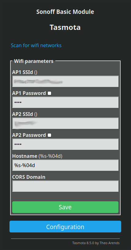 6. Bei Klick auf "Save" verbindet sich der Sonoff Mini mit eurem WLAN.