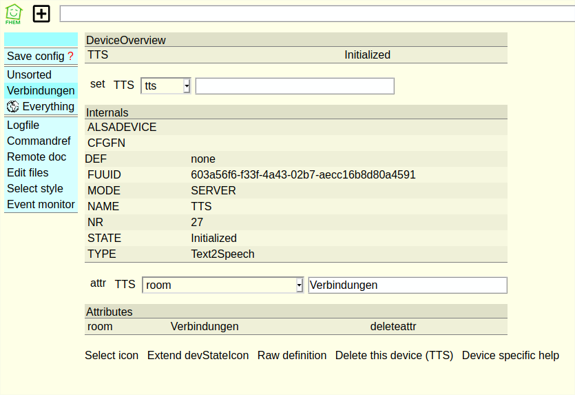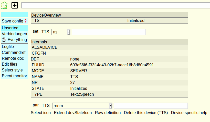 So sollte es dann aussehen! Wer noch einen Raum angelegt hat kann dieses Attribut auch gleich setzen und findet so sein Text2Speech Modul leichter wieder!